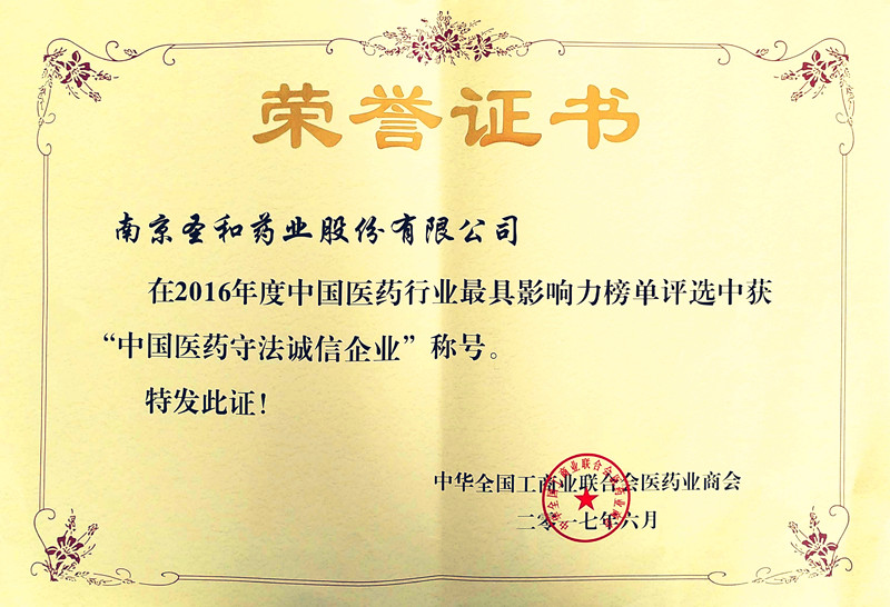 2016年度中國(guó)醫(yī)藥守法誠(chéng)信企業(yè)