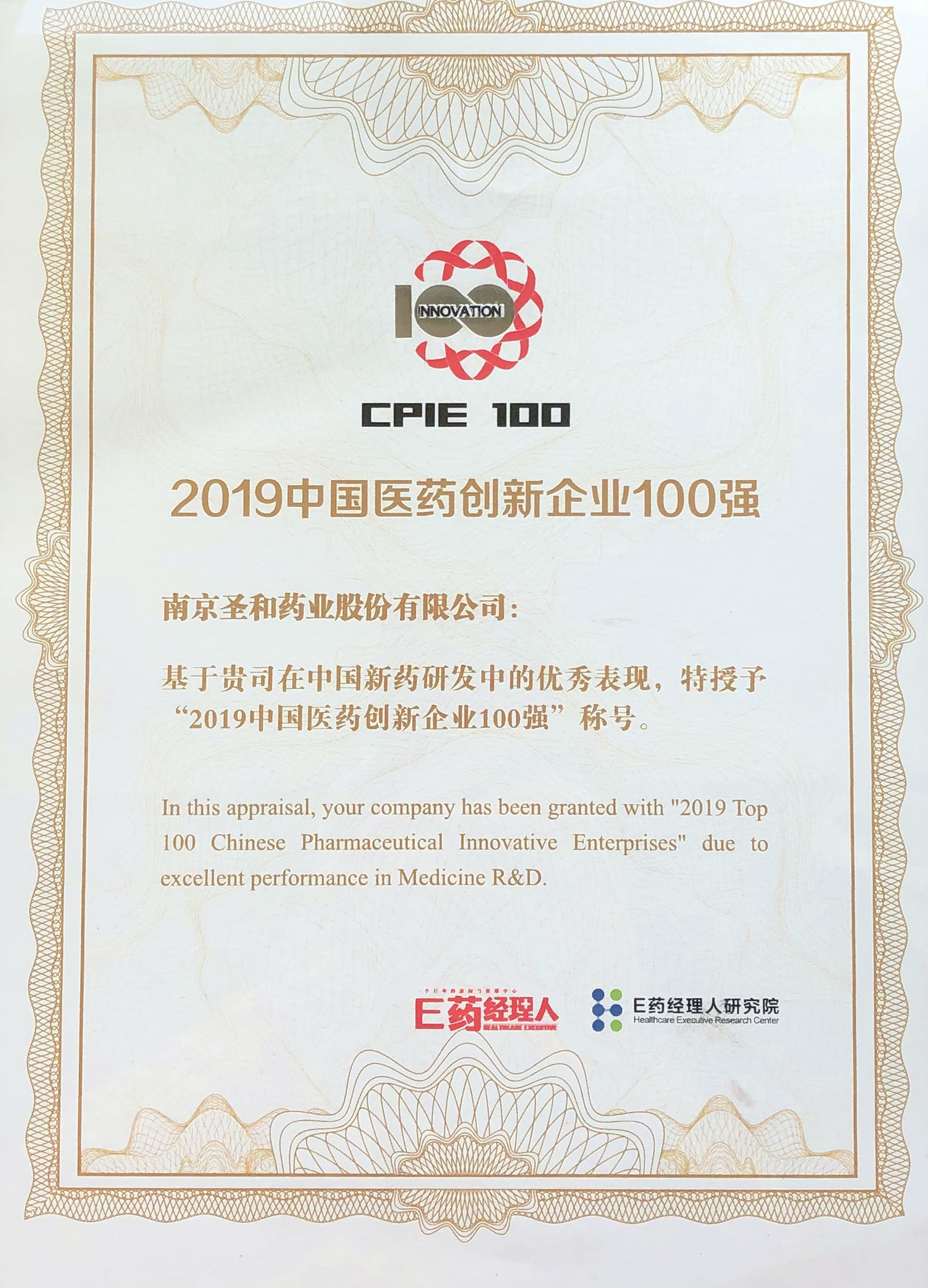 2019年中國醫(yī)藥創(chuàng)新企業(yè)100強